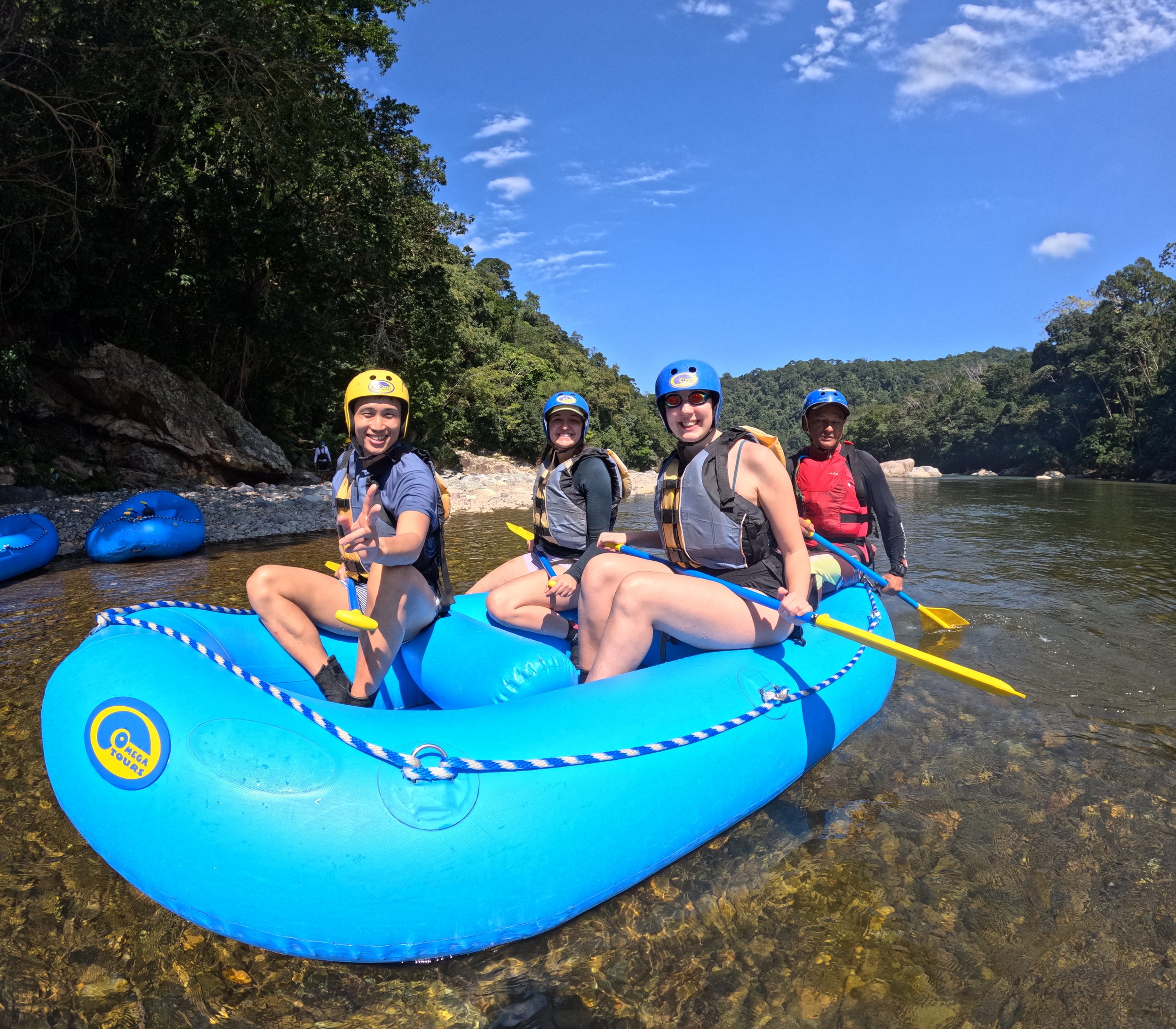 Whitewater Rafting class 1-4. The rafting run varies depending on the season and flow. Guides give you lots of instruction at the start and then assign you to specific rafts. The rafts on the Rio Cangrejal are small with a capacity for up to 4 passengers.The river water is warm and the rapids are steep and exciting! The rafting section runs along Pico Bonito National Park and offers spectacular views of the 90 meter waterfall 'El Bejuco'.